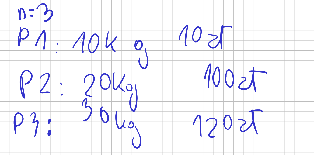 Dąży on do zabrania jak najwartosciowszego łupu, ale do swojego plecaka nie moze wziac wiecej niz W (kg)