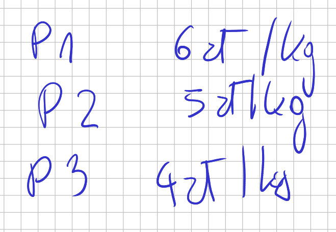 - Jeśli zapas tej substancji sie wyczerpal a w plecaku jest jeszcze wolne miejsce złodziej wybiera nastepna pod wzgledem ceny jednostkowej, substancje i wypelnia ja plecak